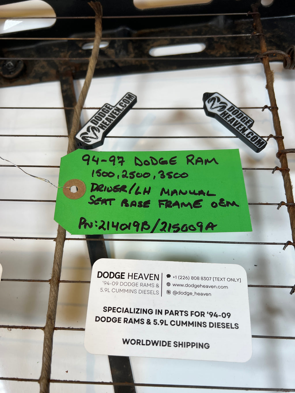 1994-1997 Dodge Ram Driver / LH manual Seat Base Frame PN: 214019B 215009A