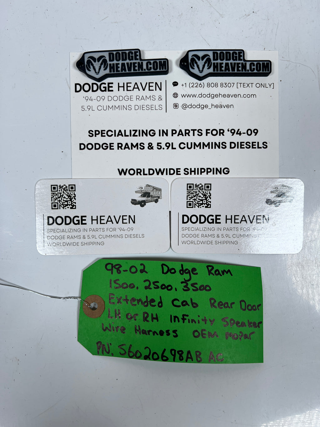 1998-2002 Dodge Ram 1500 2500 3500 Rear Door Speaker Wire Harness (OEM)PN: 56020698AB